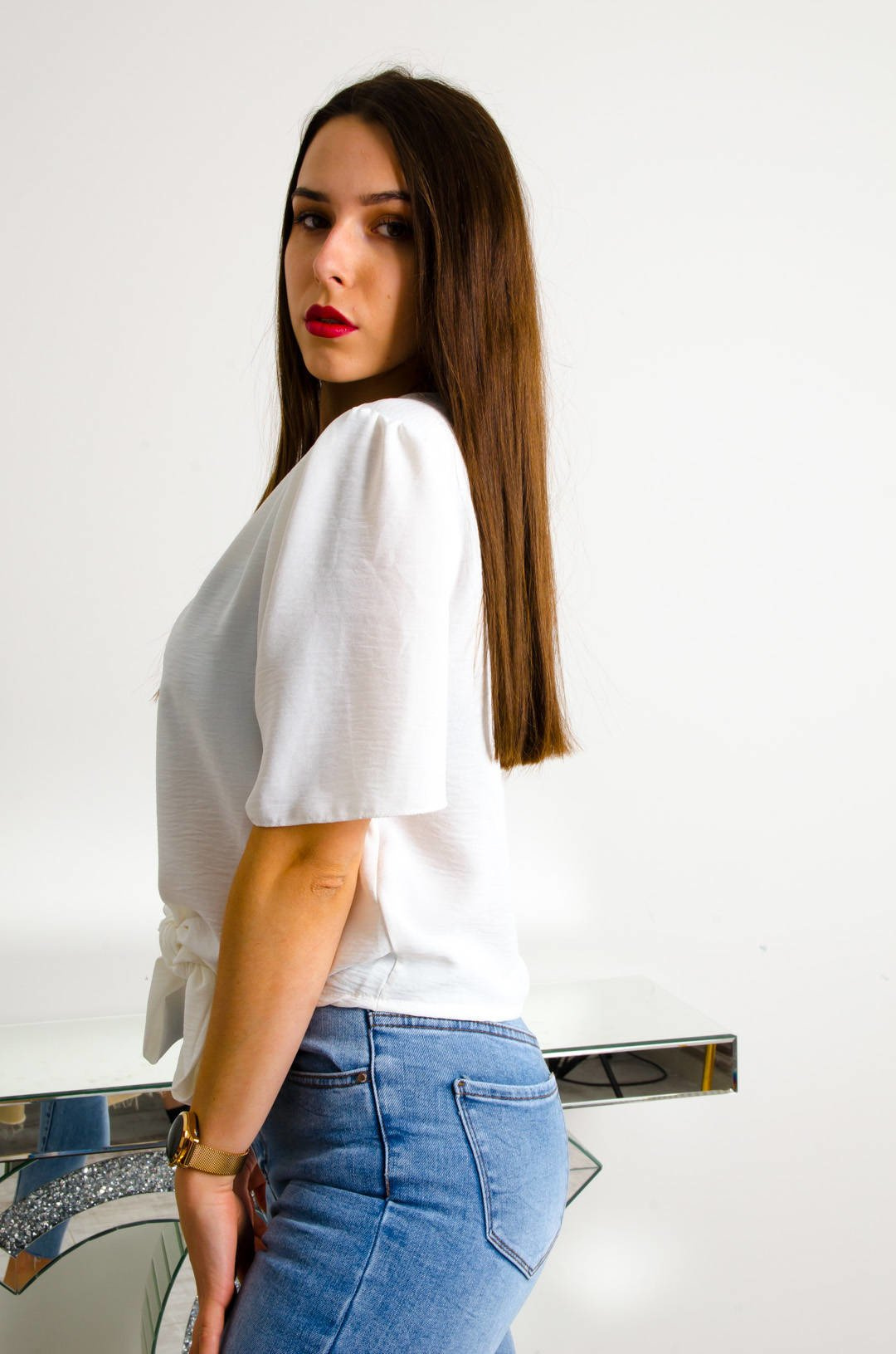 BIAŁA BLUZKA ZAPINANA NA GUZIKI Z WIĄZANIEM NA DOLE