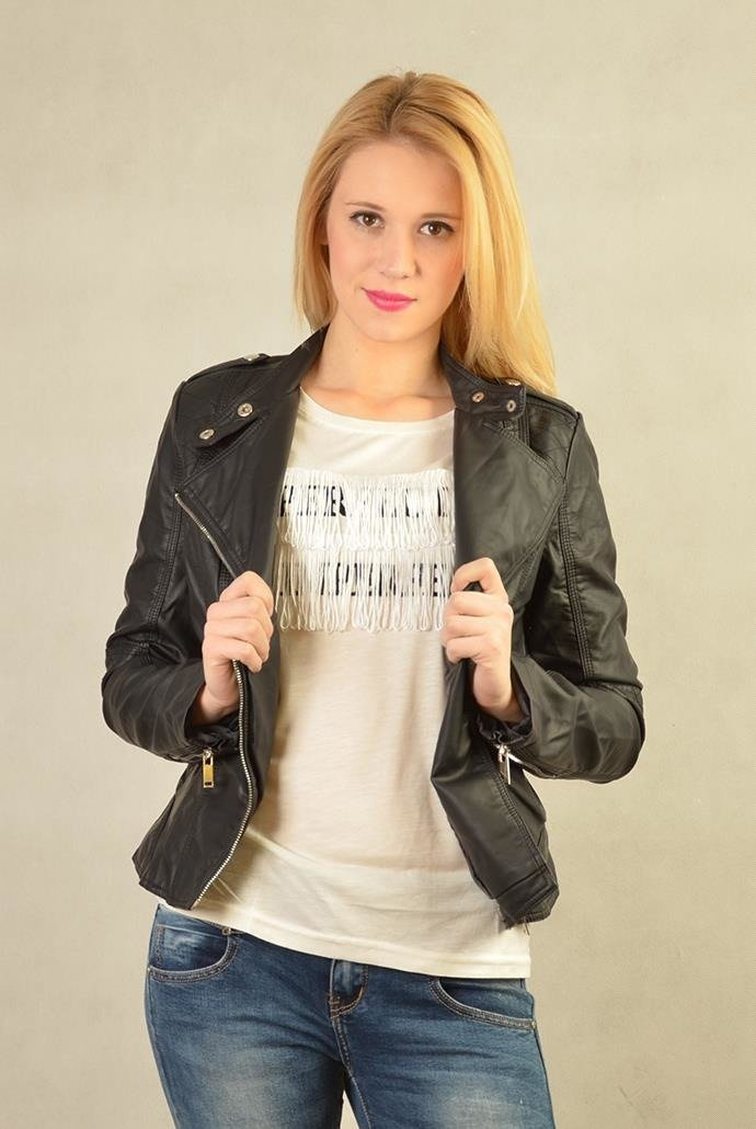 Stylowa ramoneska, zapinana po boku na suwak. Z przodu dwie zapinane kieszenie, na rękawach zamki .