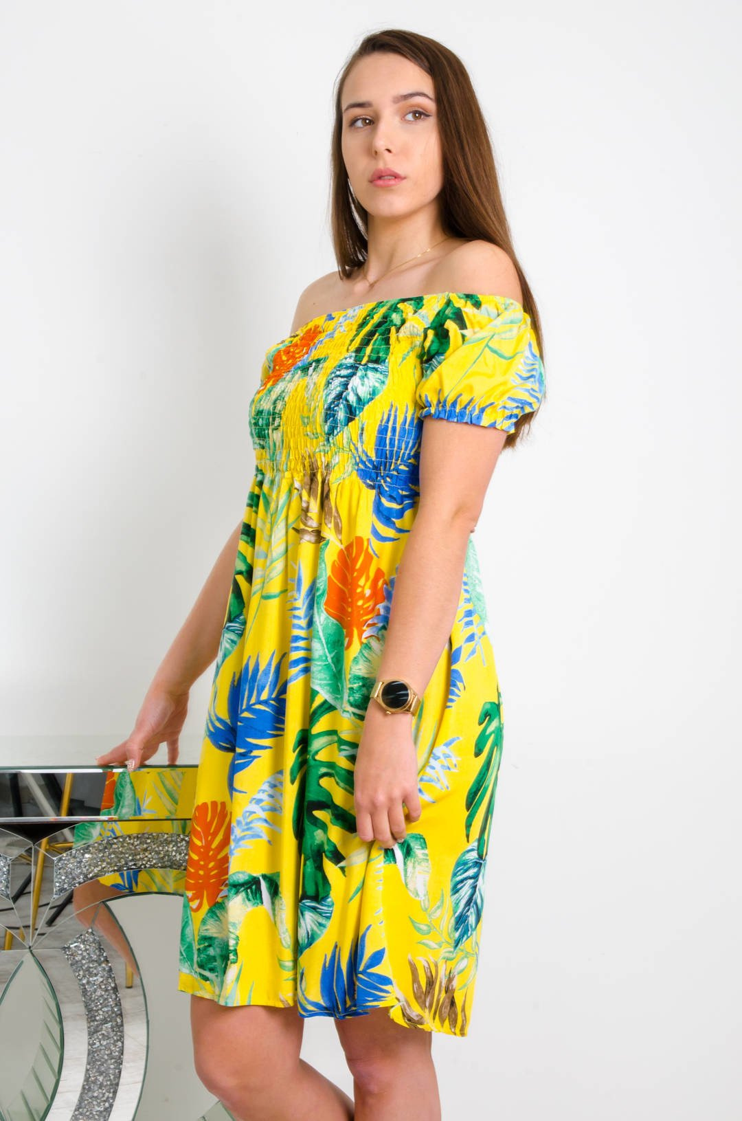 SUKIENKA HISZPANKA Z MOTYWEM KWIATÓW W KOLORZE ŻÓŁTYM