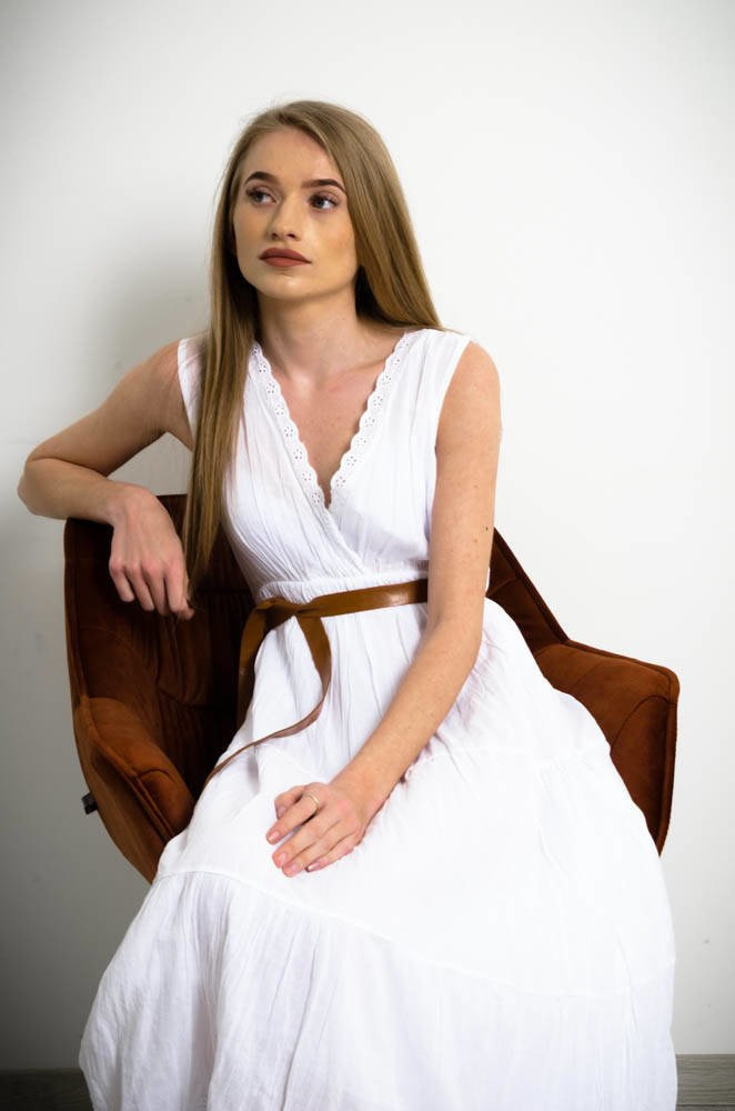 BIAŁA SUKIENKA MAXI -AŻUROWE WSTAWKI