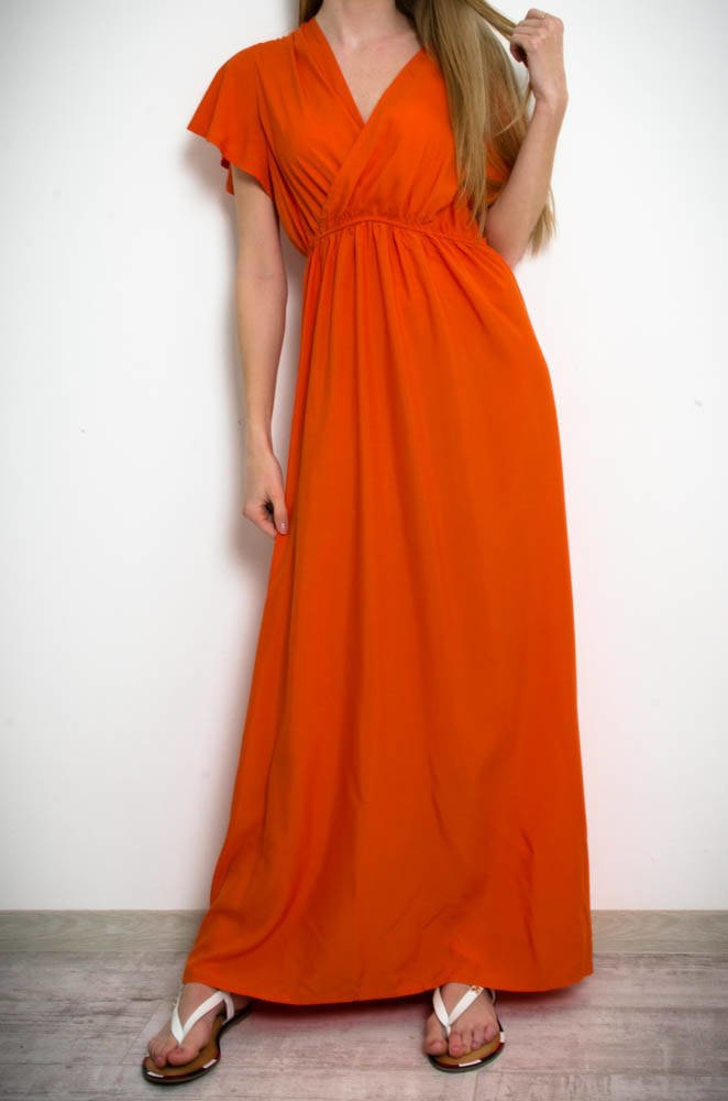 DŁUGA SUKIENKA MAXI Z KOPERTOWYM DEKOLTEM W KOLORZE POMARAŃCZOWYM