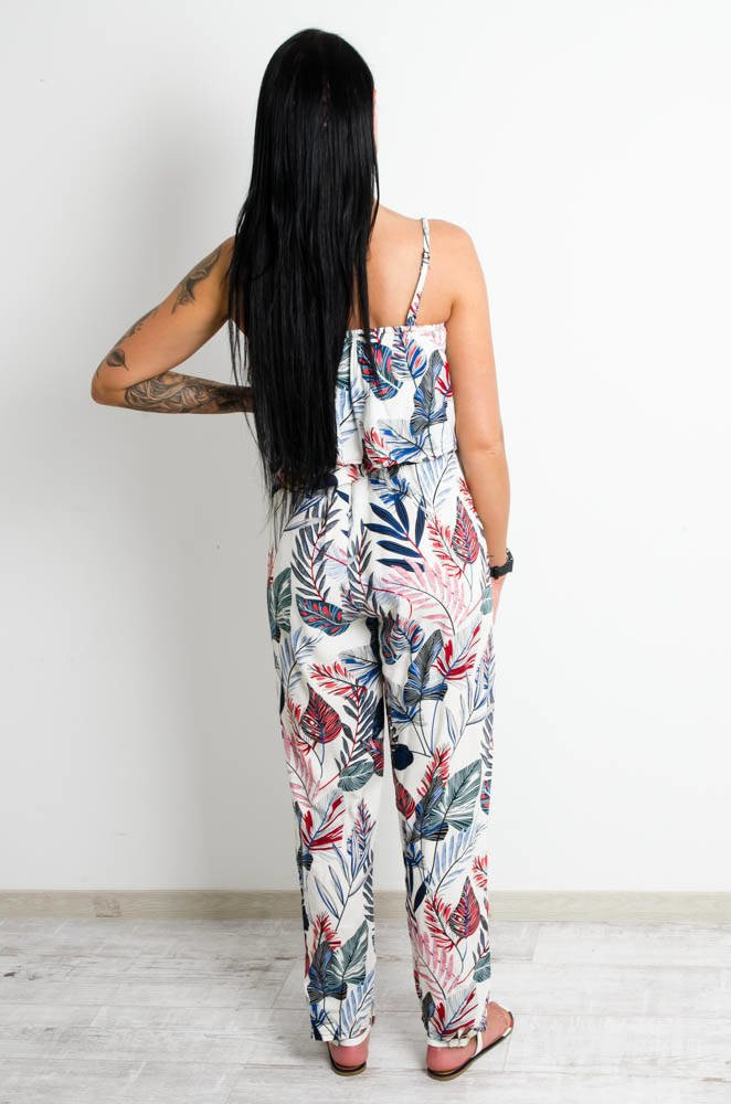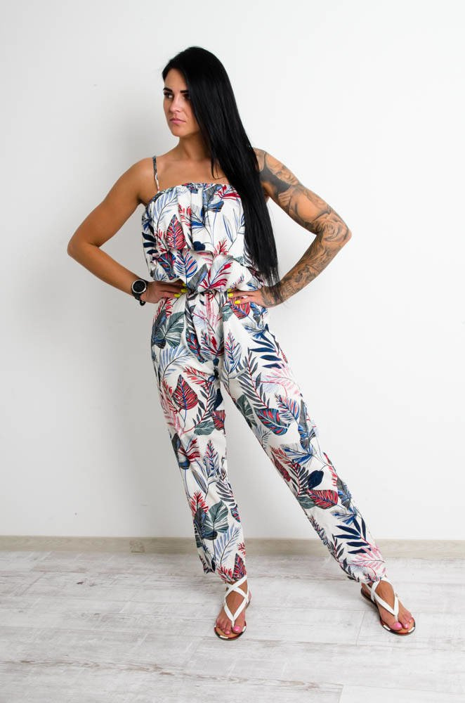 BIAŁY KOMBINEZON W KWIATY Z HISZPAŃSKIM DEKOLTEM