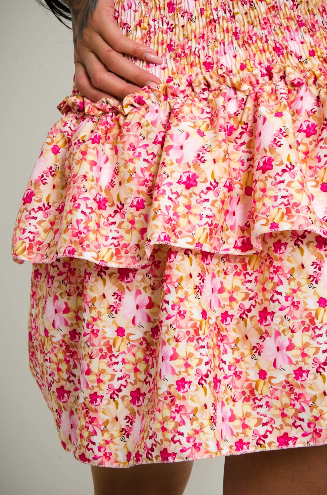 SPÓDNICA MINI W KWIATY Z FALBANAMI