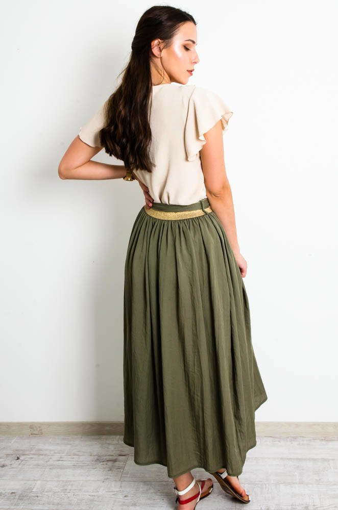 BEŻOWA BLUZKA KOSZULOWA Z ŻABOTEM