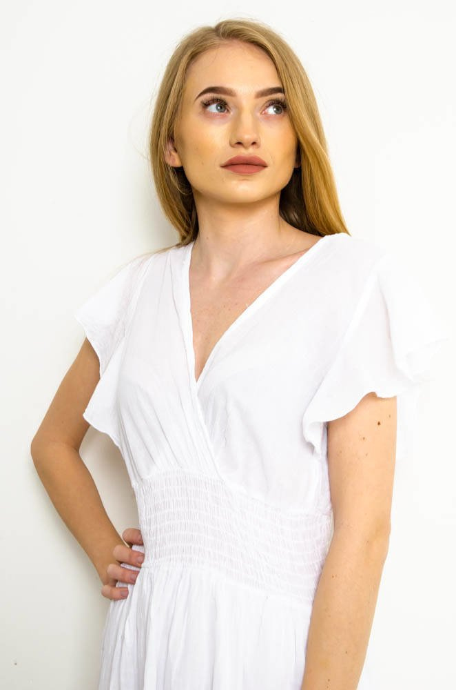 BIAŁA DŁUGA MUŚLINOWA SUKIENKA NA ZAKŁĄDKĘ MAXI