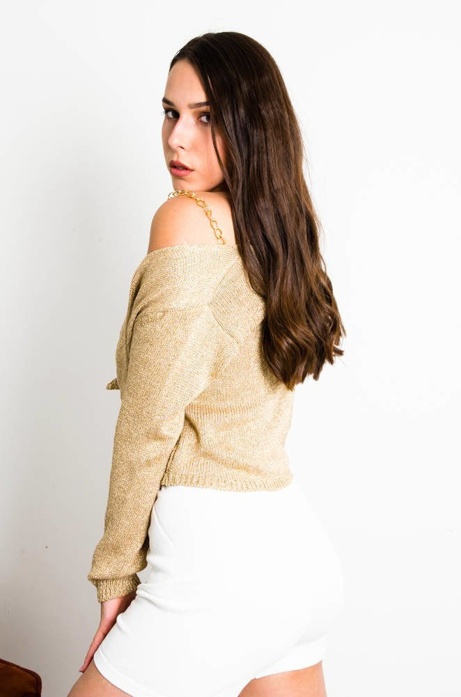 ZŁOTA BLUZKA Z POŁYSKUJACEJ DZIANINY WIĄZANA