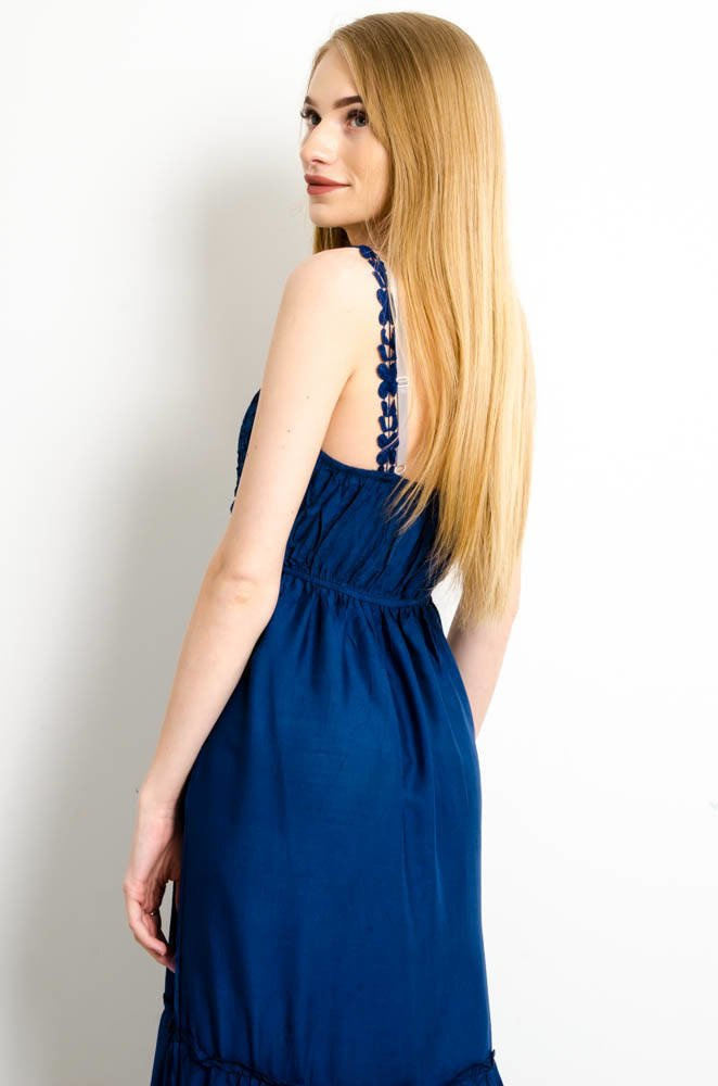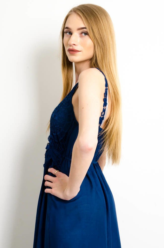 GRANATOWA SUKIENKA MAXI NA RAMIĄCZKACH Z AŻUROWĄ GÓRĄ