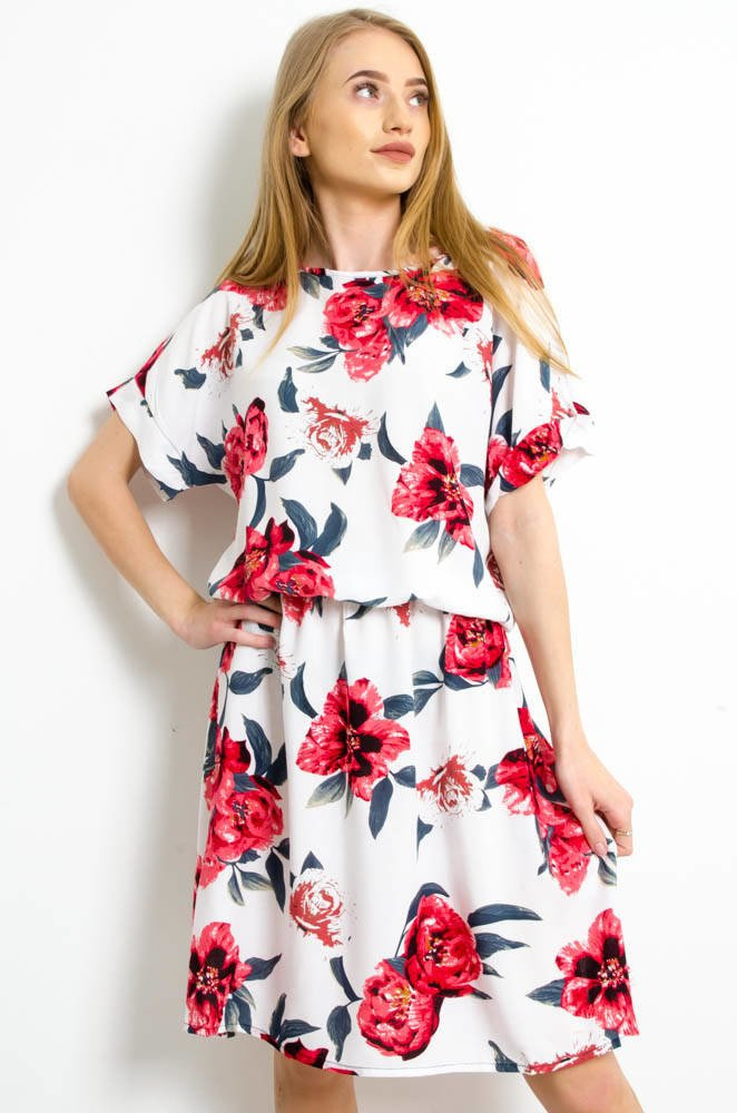 BIAŁA SUKIENKA W KWIATY Z DEKOLTEM W ŁÓDKĘ