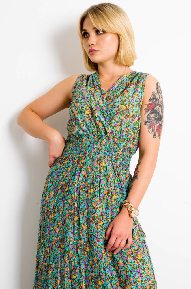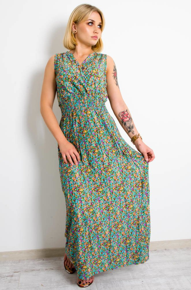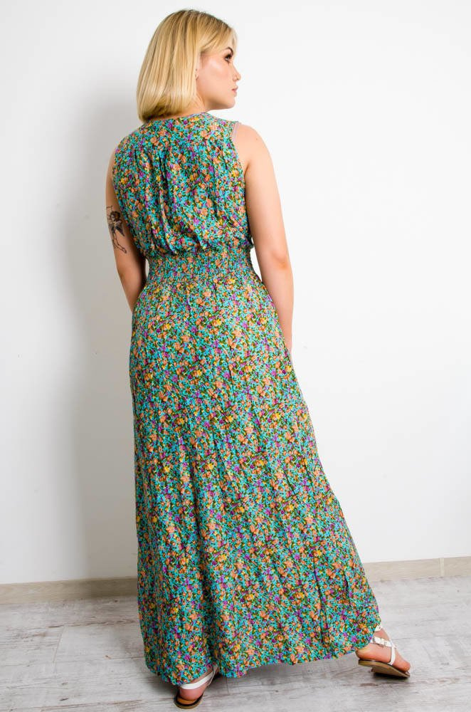 JASNO NIEBIESKA SUKIENKA MAXI W KWIATY-KOPERTOWY DEKOLT