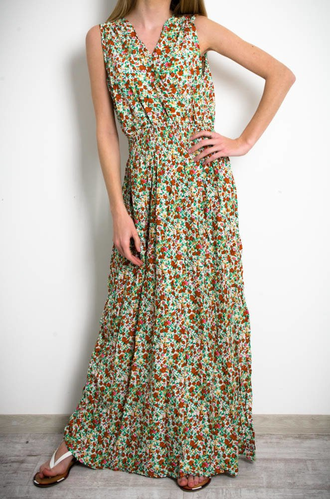 BIAŁA SUKIENKA MAXI W KWIATY-KOPERTOWY DEKOLT