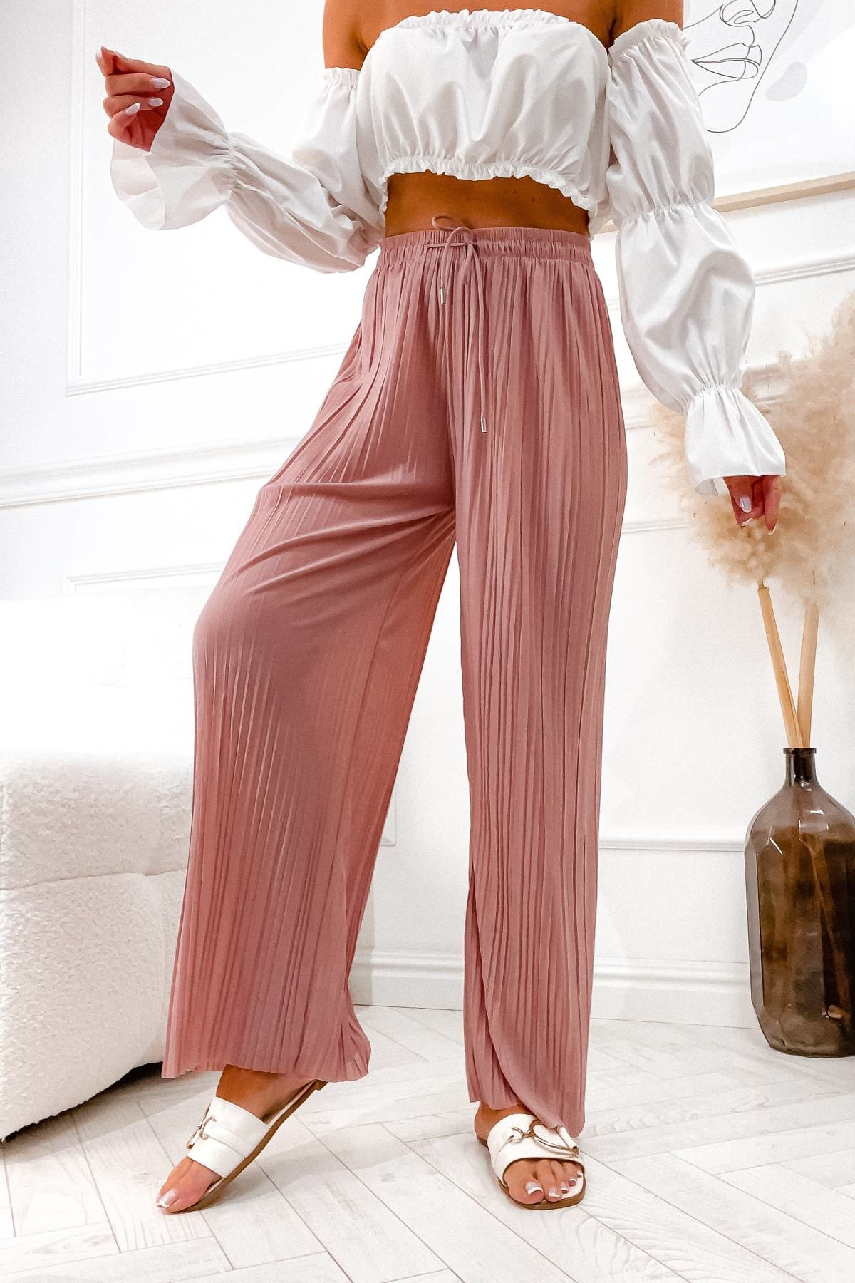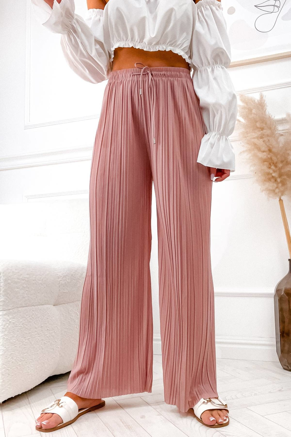 RÓŻOWE SPODNIE Z SZEROKIMI PLISOWANYMI NOGAWKAMI-WYSOKI STAN