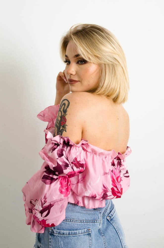 RÓŻOWA HISZPANKA CROP TOP W KWIATY