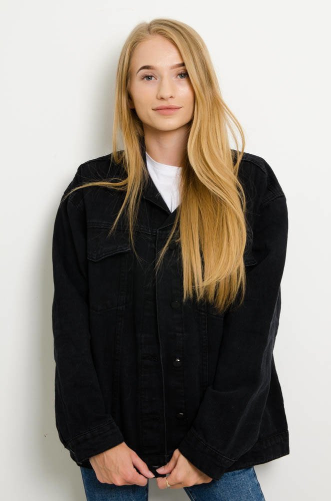 CZARNA KURTKA JEANSOWA Z NASZYWKĄ NA PLECACH