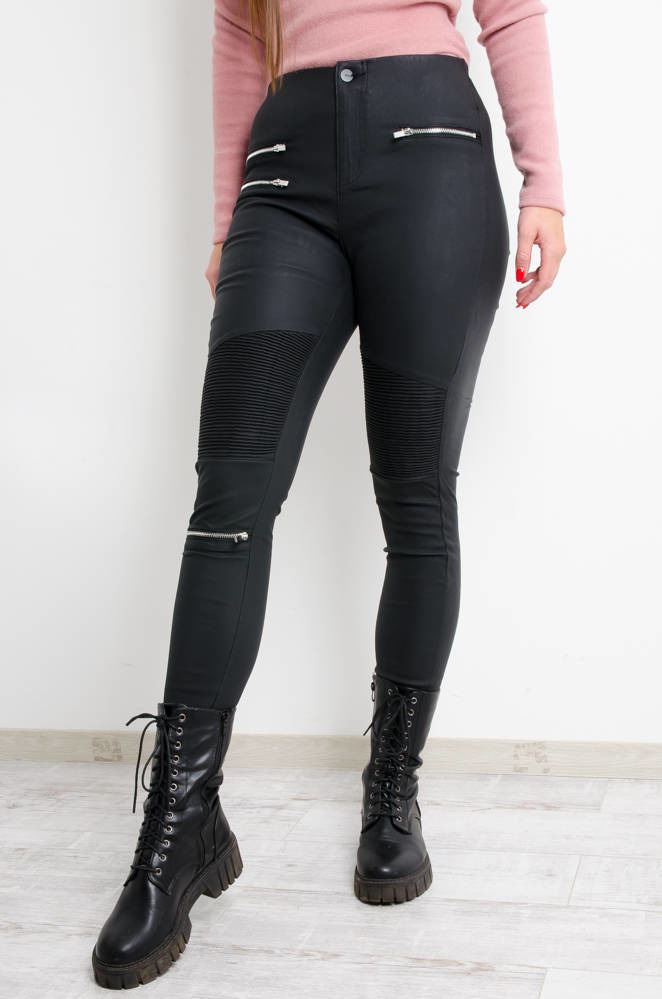 CZARNE SPODNIE WOSKOWANE Z ZAMKAMI WYSOKI STAN