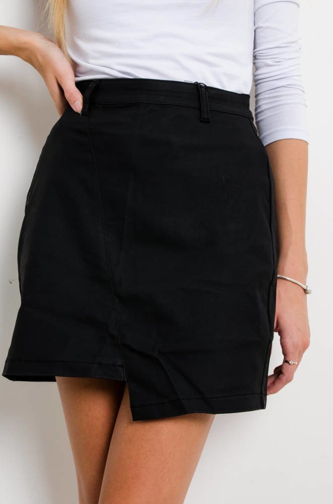 CZARNA TRAPEZOWA SPÓDNICA WOSKOWANA