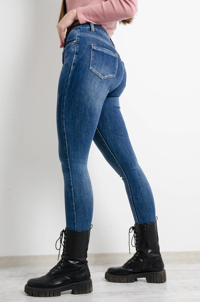 CIEMNE SPODNIE JEANSOWE Z DELIKATNYMI PRZETARCIAMI