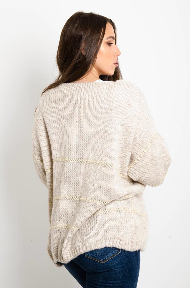 BEŻOWO-ZŁOTY SWETER KARDIGAN - NARZUTA