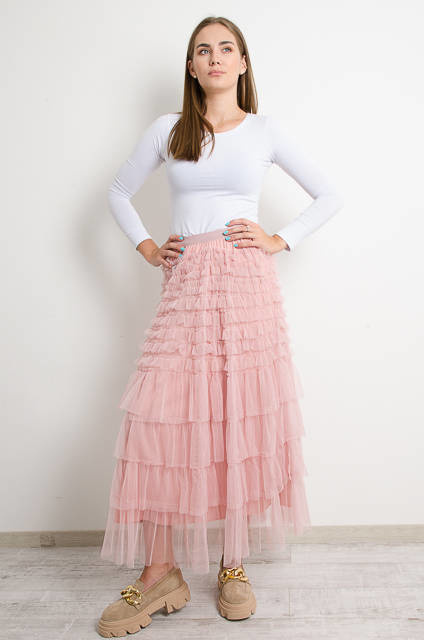 DŁUGA RÓŻOWA SPÓDNICA TIULOWA