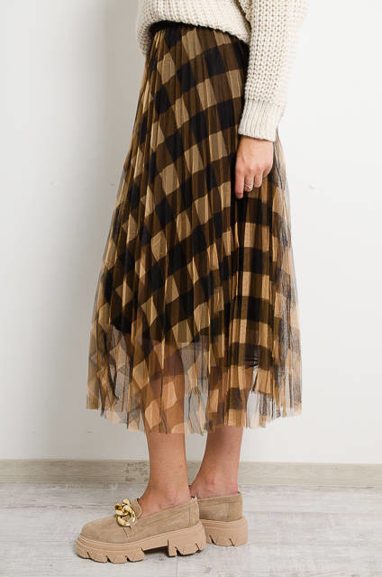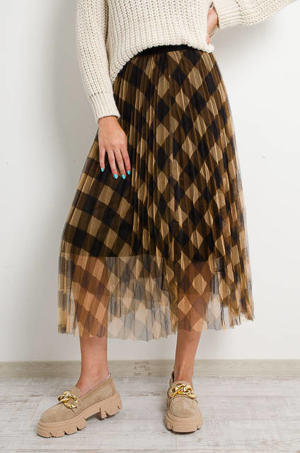 BRĄZOWA SPÓDNICA TIULOWA W KRATĘ