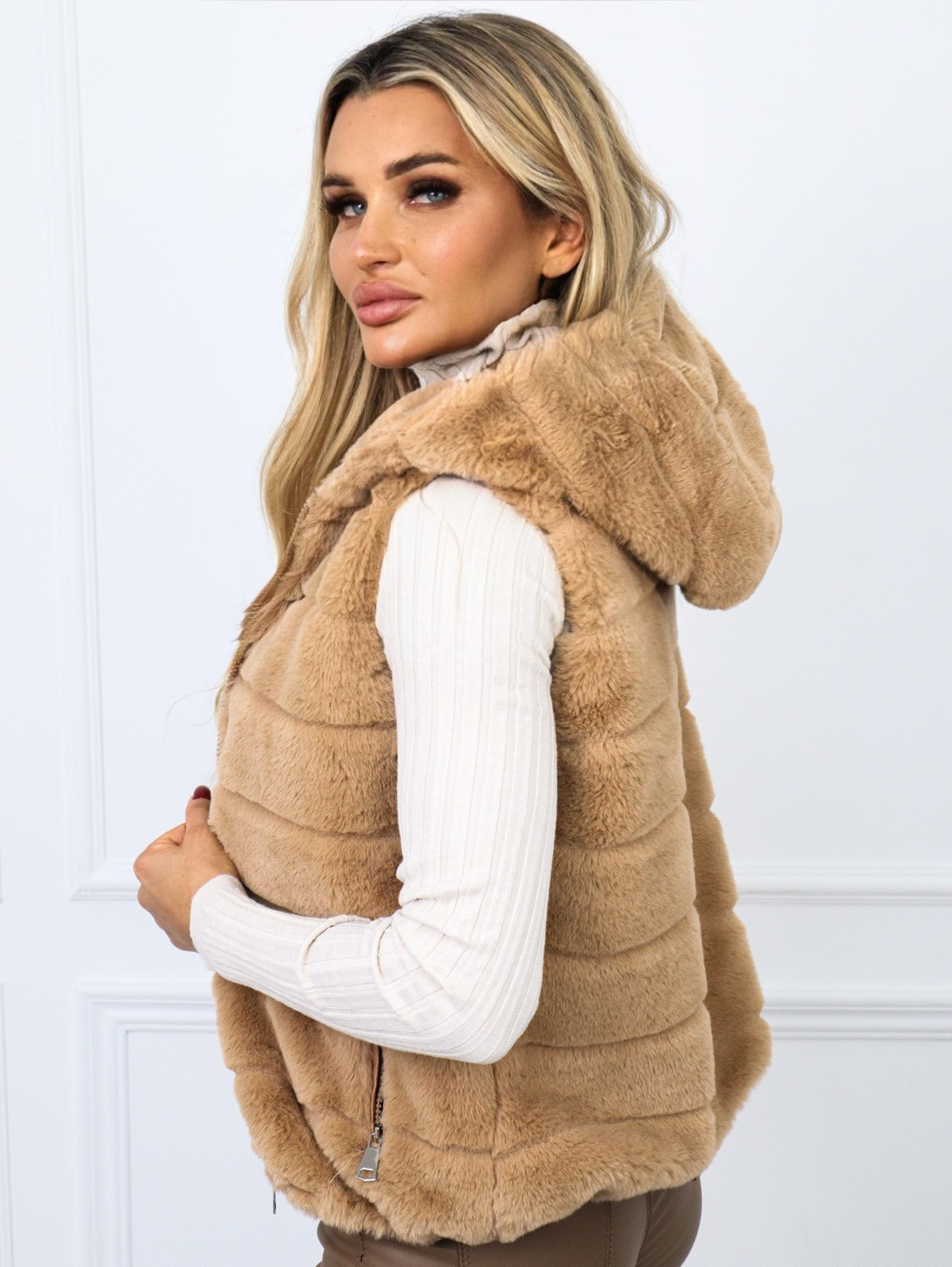 BRĄZOWA FUTRZANA KAMIZELKA - BEZRĘKAWNIK