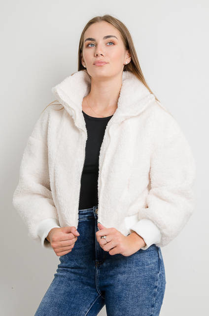 BIAŁA KURTKA BOMBERKA Z KOŻUSZKIEM