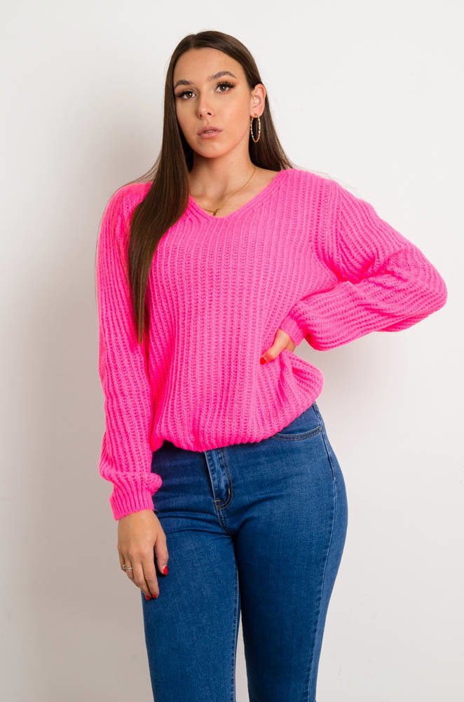 RÓŻOWY SWETER Z DEKOLTEM W SZPIC