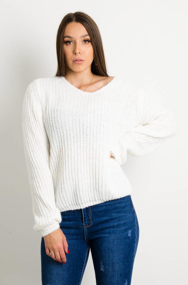 BIAŁY SWETER Z DEKOLTEM W SZPIC