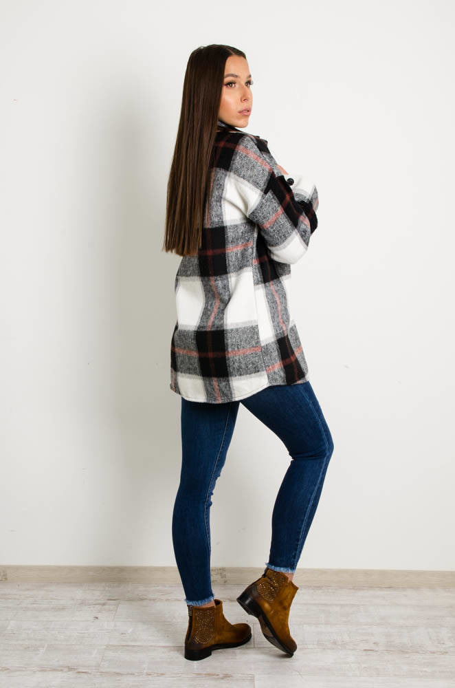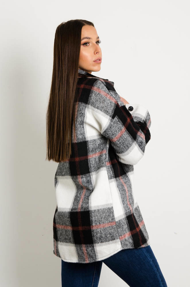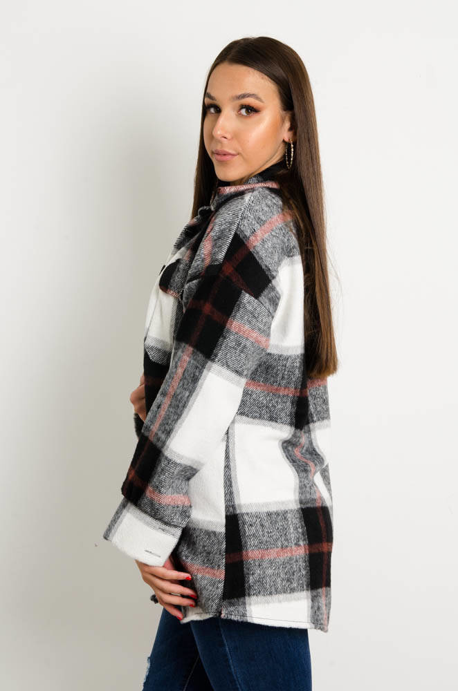 CZARNY PŁASZCZ KOSZULOWY W KRATĘ