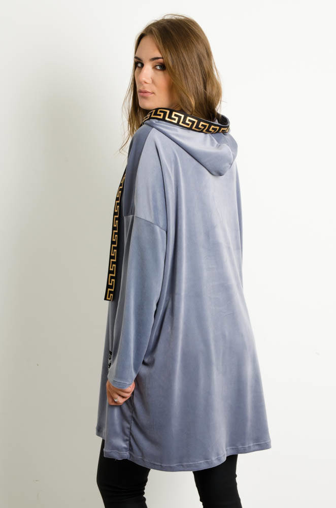 SZARA WELUROWA SUKIENKA Z KAPTUREM