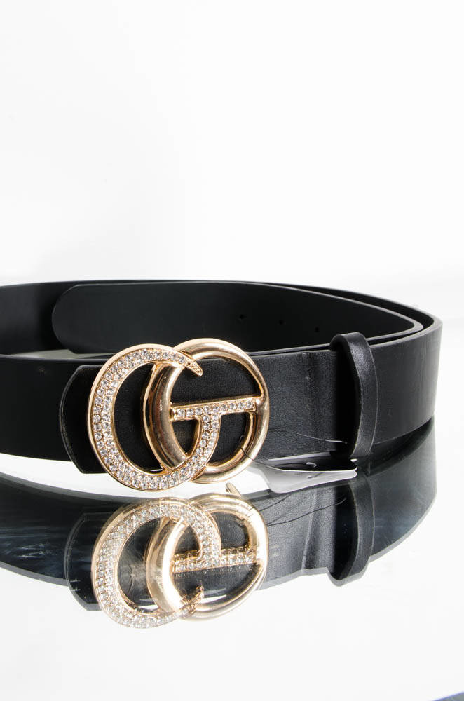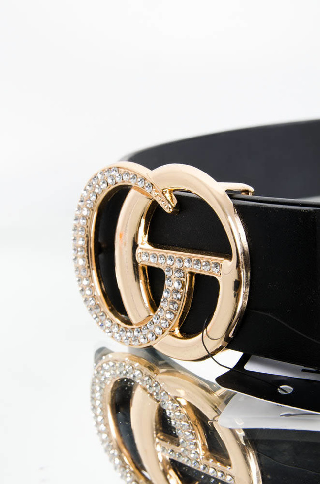 CZARNY PASEK CG- ZŁOTE ZAPIĘCIE Z CYRKONIAMI