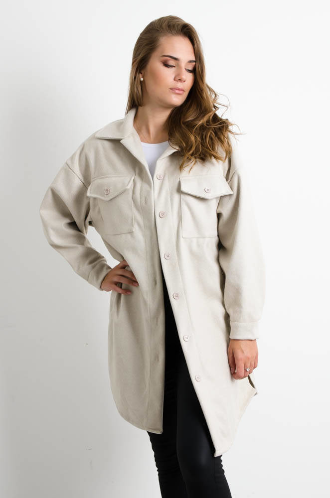 BEŻOWY DŁUGI PŁASZCZ KOSZULOWY