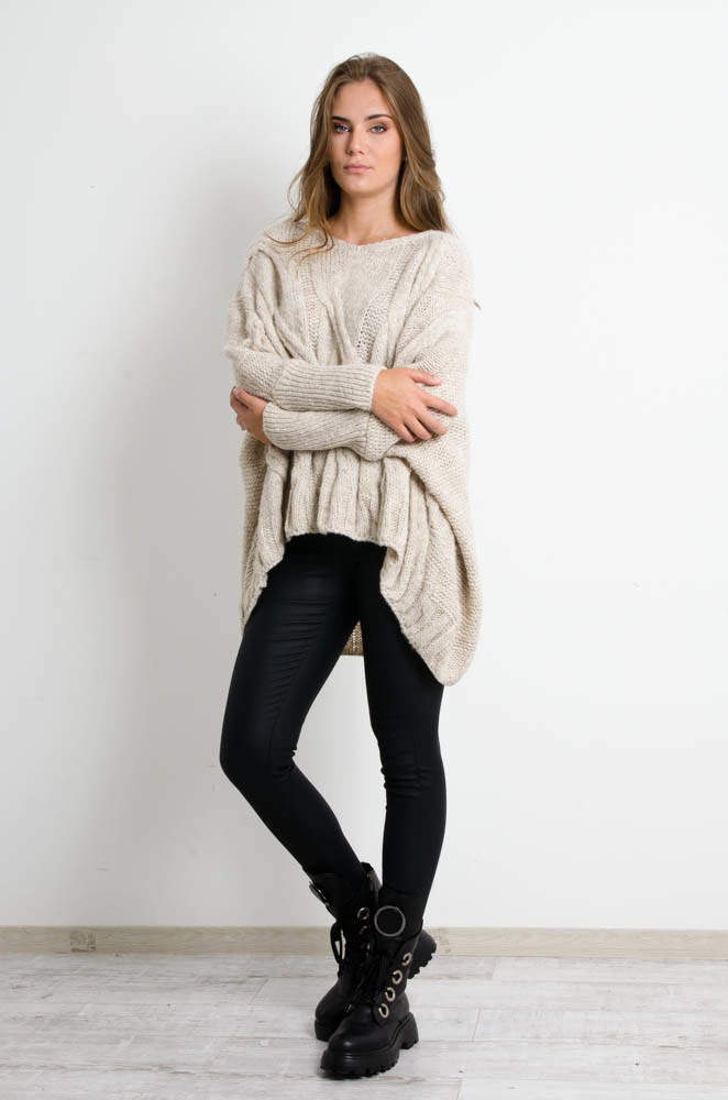 BEŻOWY OVERSIZOWY SWETER