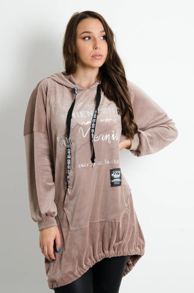 BRĄZOWA ASYMETRYCZNA TUNIKA Z NAPISEM