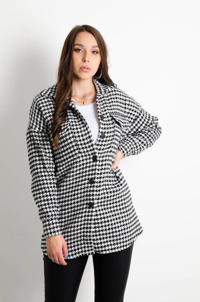 KURTKA KOSZULOWA W PEPITKĘ ZAPINANA NA GUZIKI