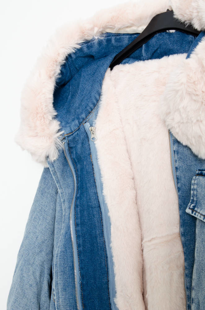 NIEBIESKA JEANSOWA KURTKA Z ODPINANYM FUTERKIEM