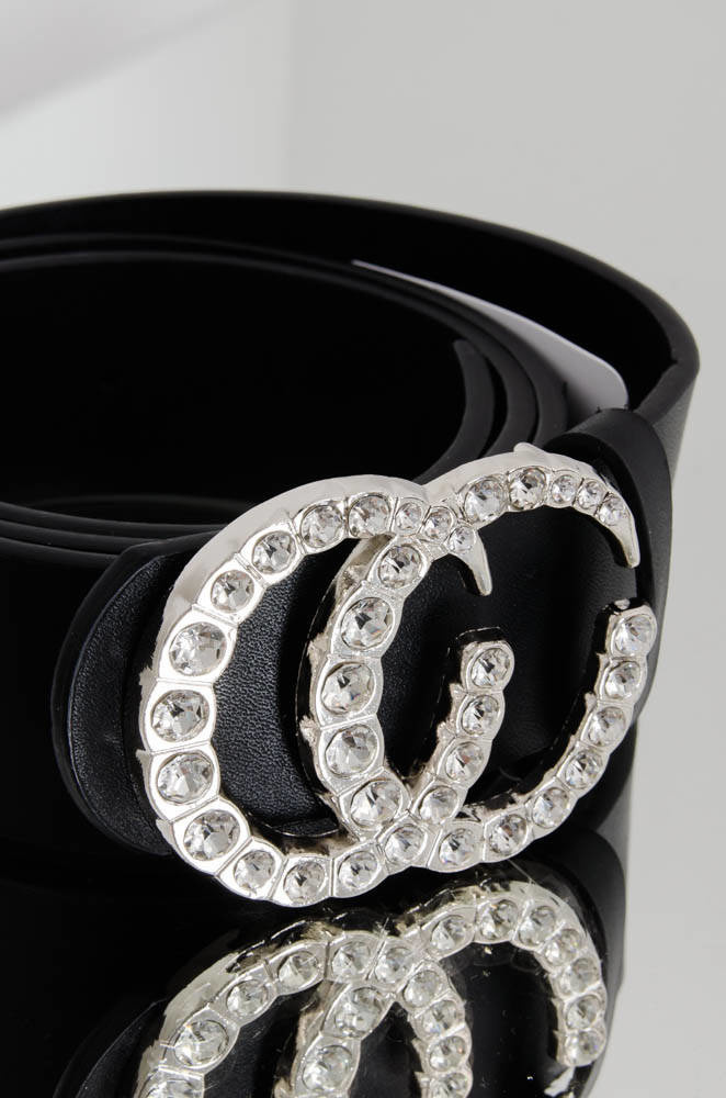 CZARNY SZEROKI PASEK -SREBRNA KLAMERKA Z CYRKONIAMI