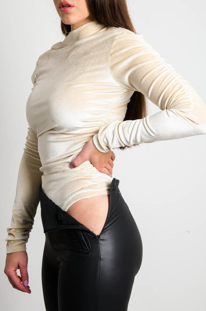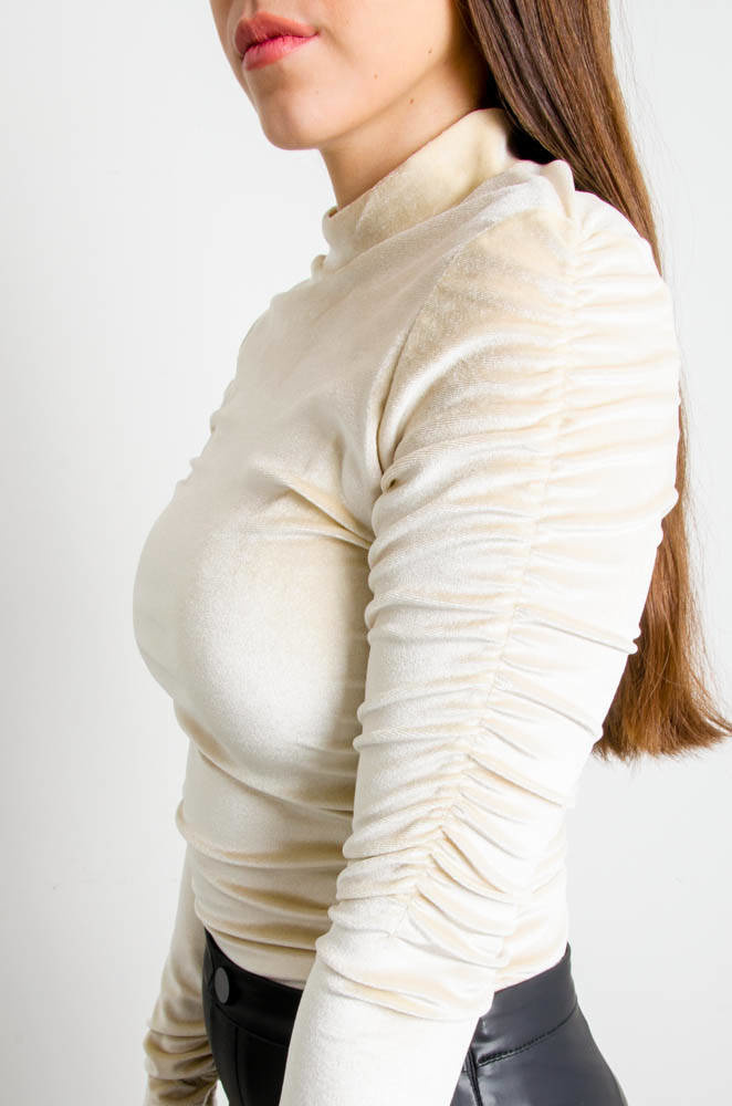 BEŻOWE WELUROWE MARSZCZONE BODY ZE STÓJKĄ