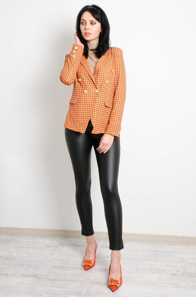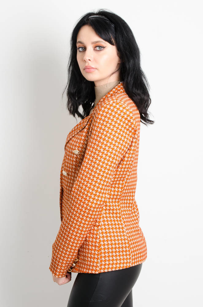 BRĄZOWA MARYNARKA W PEPITKĘ ZAPINANA NA ZŁOTE GUZIKI