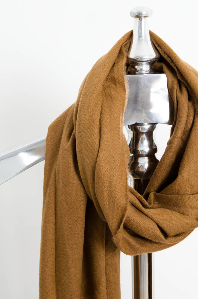 BRĄZOWY GŁADKI SZAL Z FRĘDZLAMI