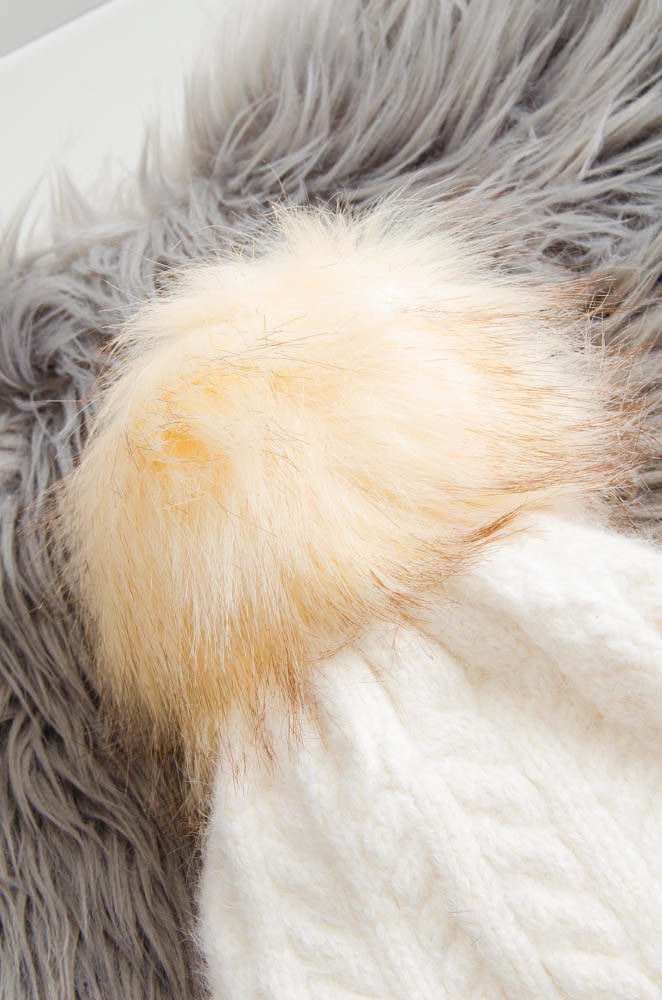 BEŻOWA OCIEPLANA CZAPKA Z POMPONEM