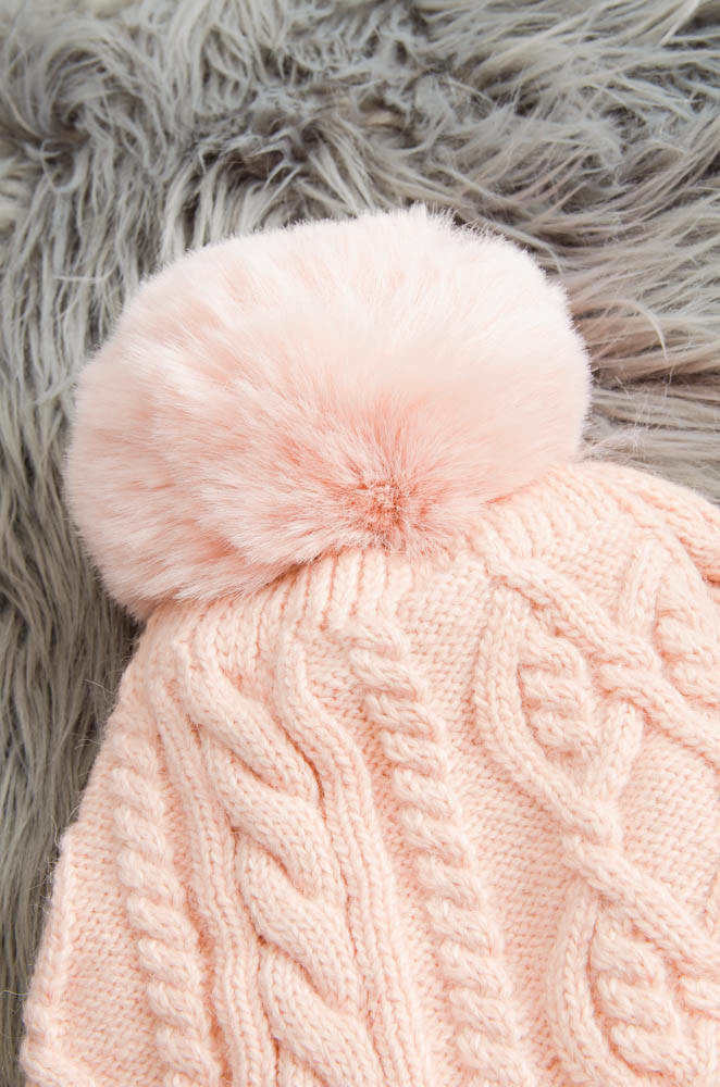ZIMOWA JASNO-RÓŻOWA PLECIONA CZAPKA Z POMPONEM
