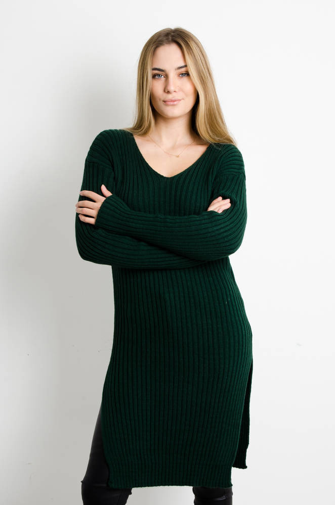 DŁUGI SWETER PRĄŻKOWANY Z ROZCIĘCIAMI