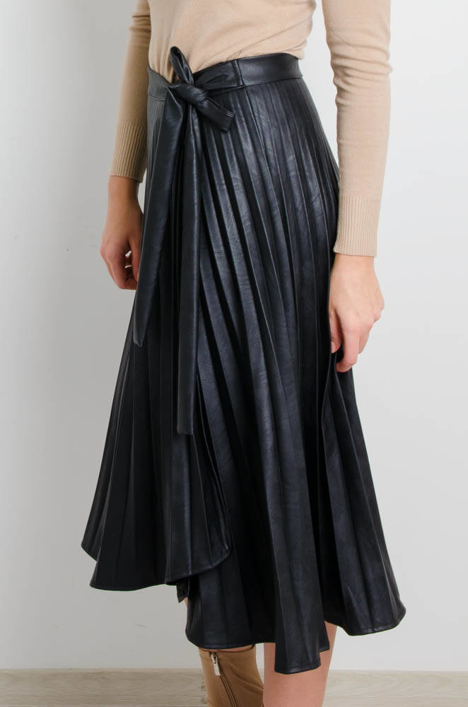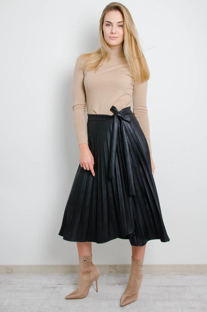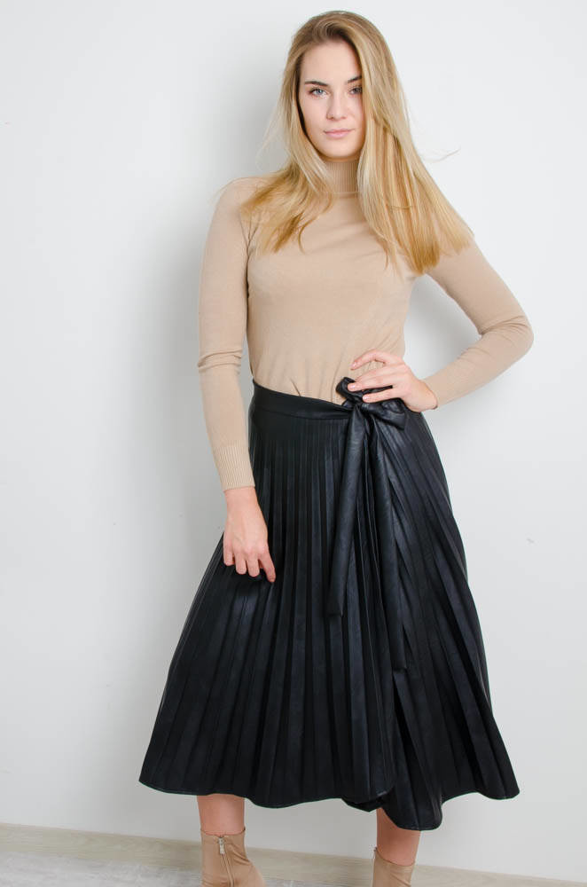 CZARNA PLISOWANA SPÓDNICA Z EKO SKÓRY -REGULOWANA
