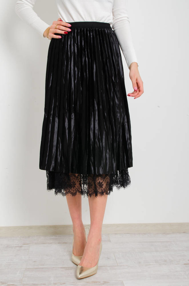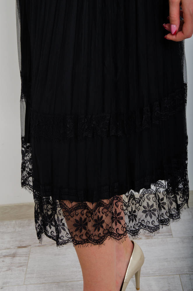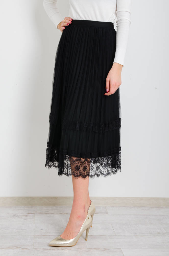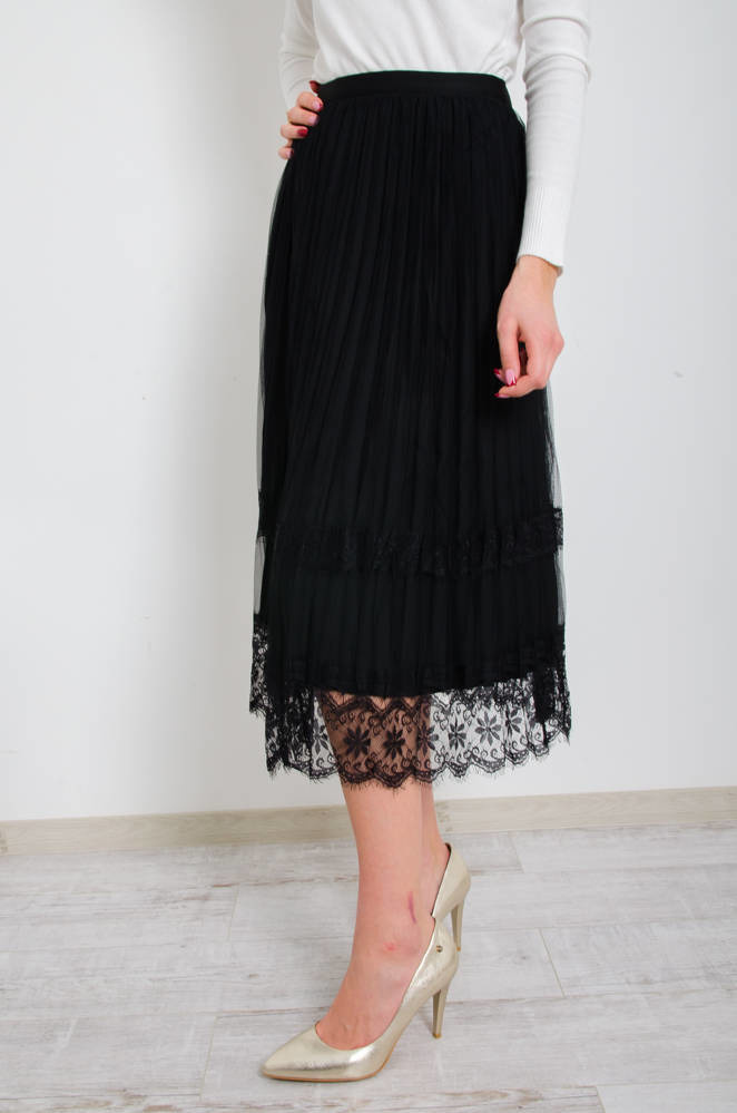 CZARNA DWUSTRONNA SPÓDNICA,WELUR -TIUL- KORONKA