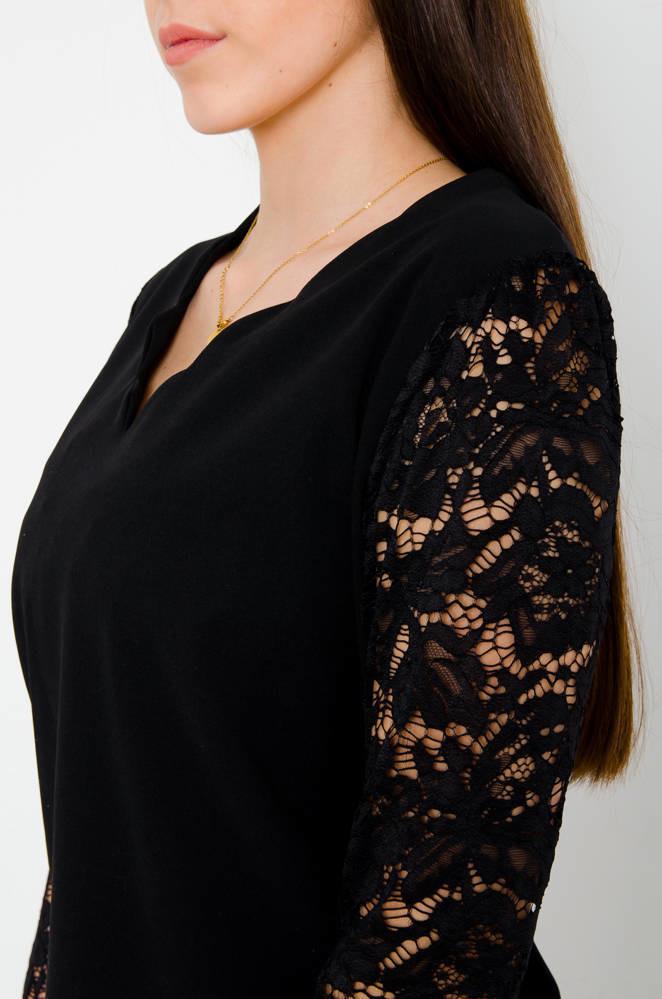 CZARNA ELEGANCKA BLUZKA Z KORONKOWYMI RĘKAWAMI