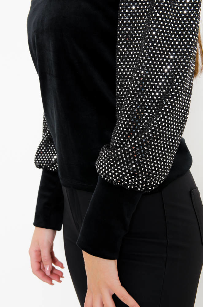 CZARNA BLUZKA Z CEKINOWYMI RĘKAWAMI
