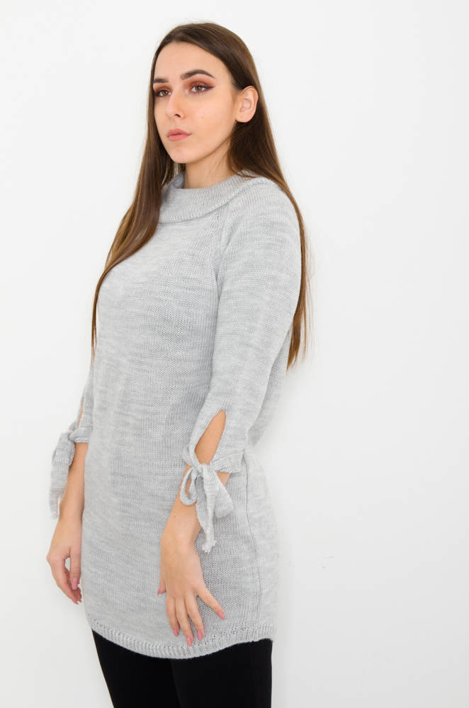 SZARY SWETER ZE WSTAŻKĄ NA RĘKAWIE