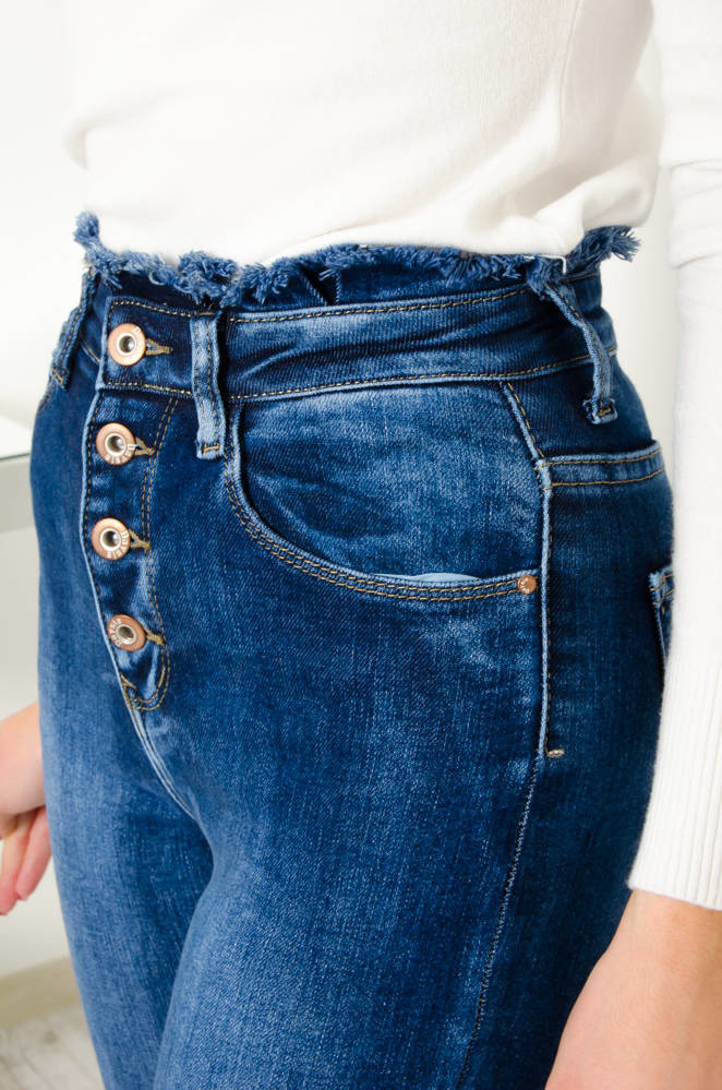 JEANSOWE PRZYLEGAJĄCE SPODNIE Z GUZIKAMI- WYSOKI STAN