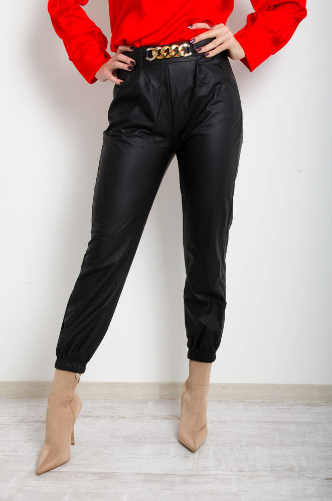 SPODNIE JOGGERY Z IMITACJI SKÓRY Z OZDOBNYM ŁANCUCHEM