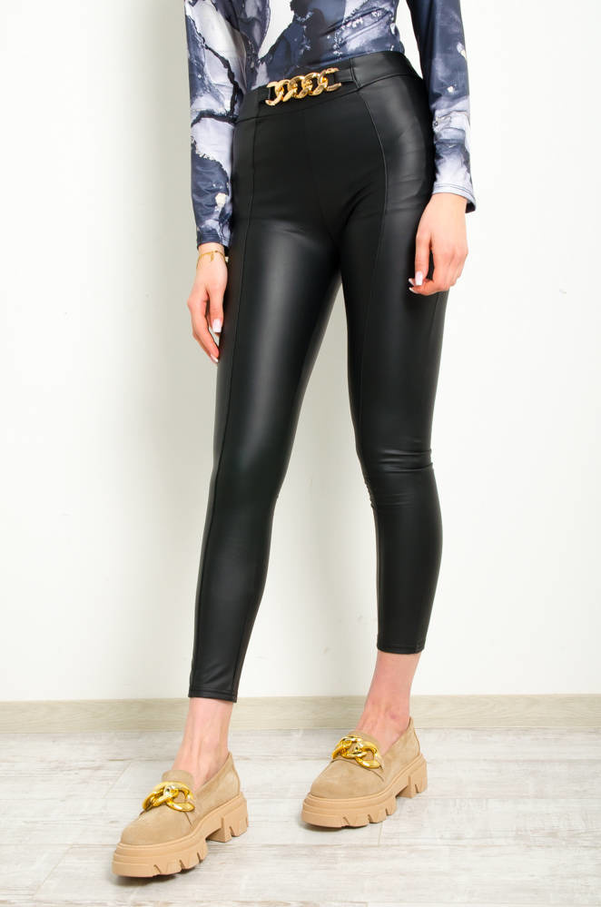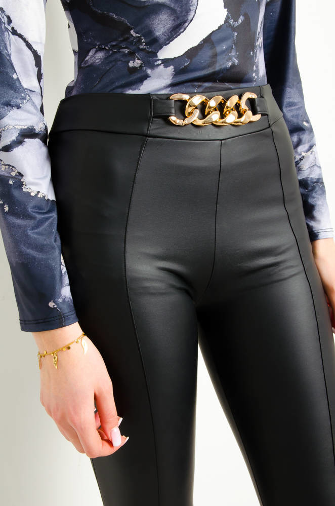 CZARNE LEGGINSY Z PRZESZYCIAMI I OZDOBNYM ŁAŃCUCHEM